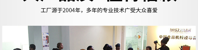 廣州旭眾食品機(jī)械有限公司是一家集科研開發(fā),生產(chǎn)設(shè)計(jì),營銷服務(wù)為一體的現(xiàn)代化生產(chǎn)企業(yè)。現(xiàn)代化生產(chǎn)車間,精湛制造技術(shù),所產(chǎn)機(jī)械歷經(jīng)市場重重考驗(yàn),不斷贏得海內(nèi)外客戶的贊譽(yù)。