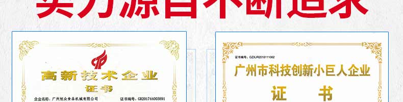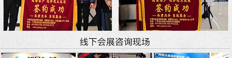 廣州旭眾食品機械有限公司是一家集科研開發(fā),生產(chǎn)設計,營銷服務為一體的現(xiàn)代化生產(chǎn)企業(yè)?,F(xiàn)代化生產(chǎn)車間,精湛制造技術,所產(chǎn)機械歷經(jīng)市場重重考驗,不斷贏得海內(nèi)外客戶的贊譽。