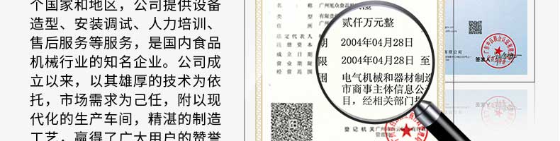 廣州旭眾食品機械有限公司是一家集科研開發(fā),生產(chǎn)設(shè)計,營銷服務(wù)為一體的現(xiàn)代化生產(chǎn)企業(yè)?,F(xiàn)代化生產(chǎn)車間,精湛制造技術(shù),所產(chǎn)機械歷經(jīng)市場重重考驗,不斷贏得海內(nèi)外客戶的贊譽。