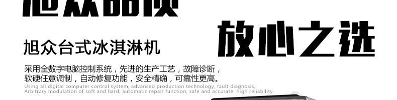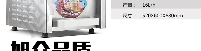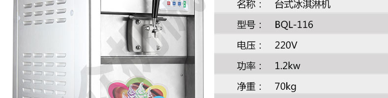 BQL-116臺式冰淇淋機,●選用國際名牌成熟制冷配套件和高效壓縮機,融合旭眾精湛工藝輔以嚴格的質(zhì)量控制流程,使產(chǎn)品整體性能及品質(zhì)得以全面提升?!癫捎萌珨?shù)字電腦控制系統(tǒng),選用名牌優(yōu)質(zhì)電器元件,先進的生產(chǎn)工藝,故障診斷,軟硬任意調(diào)制,自動修復功能,安全精確,可靠性更高?!駥I(yè)成熟制冷系統(tǒng)設(shè)計,選用世界名牌大功率專用壓縮機,大大縮短冰淇淋成型時間,相同時間內(nèi)冰淇淋產(chǎn)量大幅度增加,使您生意火爆時依然得心應(yīng)手,為您創(chuàng)造財富?!癜踩椒€(wěn)的機械攪拌系統(tǒng),噪音更低、振動更小,使整機運行性能達到國際先進水平?!翊_保進料溫度在0°C~35°C;環(huán)境溫度5°C~40°C勻可正常使用。
