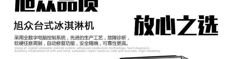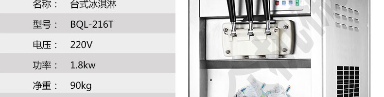 BQL-216T臺(tái)式冰淇淋機(jī),●選用國際名牌成熟制冷配套件和高效壓縮機(jī),融合旭眾精湛工藝輔以嚴(yán)格的質(zhì)量控制流程,使產(chǎn)品整體性能及品質(zhì)得以全面提升。●采用全數(shù)字電腦控制系統(tǒng),選用名牌優(yōu)質(zhì)電器元件,先進(jìn)的生產(chǎn)工藝,故障診斷,軟硬任意調(diào)制,自動(dòng)修復(fù)功能,安全精確,可靠性更高。●專業(yè)成熟制冷系統(tǒng)設(shè)計(jì),選用世界名牌大功率專用壓縮機(jī),大大縮短冰淇淋成型時(shí)間,相同時(shí)間內(nèi)冰淇淋產(chǎn)量大幅度增加,使您生意火爆時(shí)依然得心應(yīng)手,為您創(chuàng)造財(cái)富。●安全平穩(wěn)的機(jī)械攪拌系統(tǒng),噪音更低、振動(dòng)更小,使整機(jī)運(yùn)行性能達(dá)到國際先進(jìn)水平。●確保進(jìn)料溫度在0°C~35°C;環(huán)境溫度5°C~40°C勻可正常使用。