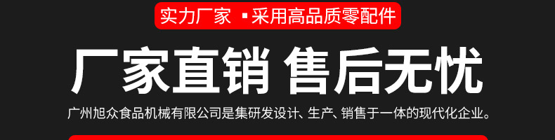 廣州旭眾食品機械有限公司是一家集科研開發(fā),生產(chǎn)設計,營銷服務為一體的現(xiàn)代化生產(chǎn)企業(yè)。現(xiàn)代化生產(chǎn)車間,精湛制造技術,所產(chǎn)機械歷經(jīng)市場重重考驗,不斷贏得海內(nèi)外客戶的贊譽。