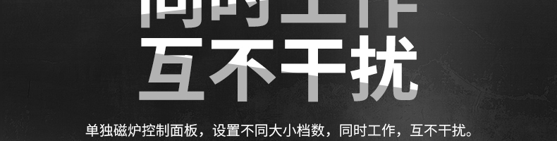 四頭柜式電磁爐,10檔調(diào)節(jié),滿足各種烹飪。3500W火力十足,輕松選擇合適火力。同時(shí)工作互不干擾單獨(dú)磁爐控制面板,設(shè)置不同大小檔數(shù),同時(shí)工作,互不干擾。