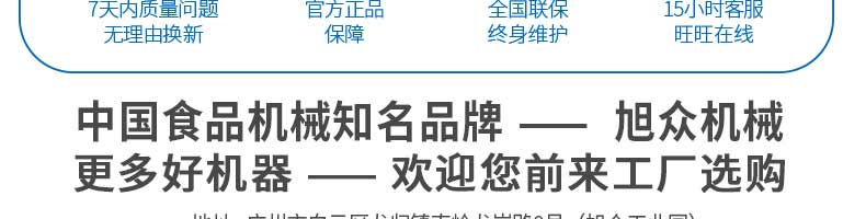 廣州旭眾食品機械有限公司是一家集科研開發(fā),生產(chǎn)設(shè)計,營銷服務(wù)為一體的現(xiàn)代化生產(chǎn)企業(yè)。現(xiàn)代化生產(chǎn)車間,精湛制造技術(shù),所產(chǎn)機械歷經(jīng)市場重重考驗,不斷贏得海內(nèi)外客戶的贊譽。