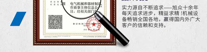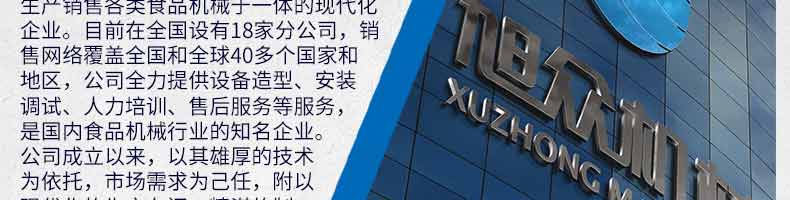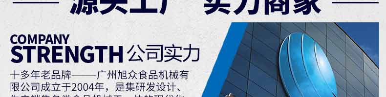 廣州旭眾食品機(jī)械有限公司是一家集科研開(kāi)發(fā),生產(chǎn)設(shè)計(jì),營(yíng)銷(xiāo)服務(wù)為一體的現(xiàn)代化生產(chǎn)企業(yè)。現(xiàn)代化生產(chǎn)車(chē)間,精湛制造技術(shù),所產(chǎn)機(jī)械歷經(jīng)市場(chǎng)重重考驗(yàn),不斷贏得海內(nèi)外客戶的贊譽(yù)。