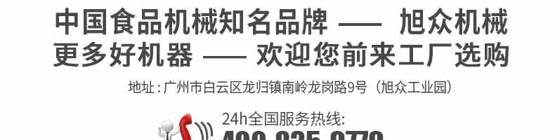 廣州旭眾食品機(jī)械有限公司是一家集科研開發(fā),生產(chǎn)設(shè)計,營銷服務(wù)為一體的現(xiàn)代化生產(chǎn)企業(yè)?,F(xiàn)代化生產(chǎn)車間,精湛制造技術(shù),所產(chǎn)機(jī)械歷經(jīng)市場重重考驗,不斷贏得海內(nèi)外客戶的贊譽。