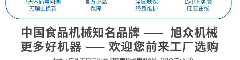 廣州旭眾食品機(jī)械有限公司是一家集科研開(kāi)發(fā),生產(chǎn)設(shè)計(jì),營(yíng)銷服務(wù)為一體的現(xiàn)代化生產(chǎn)企業(yè)?,F(xiàn)代化生產(chǎn)車間,精湛制造技術(shù),所產(chǎn)機(jī)械歷經(jīng)市場(chǎng)重重考驗(yàn),不斷贏得海內(nèi)外客戶的贊譽(yù)。