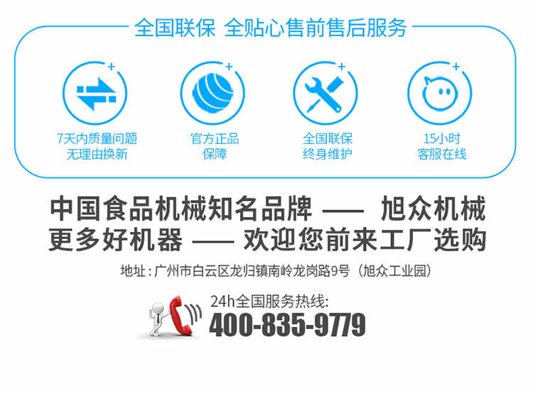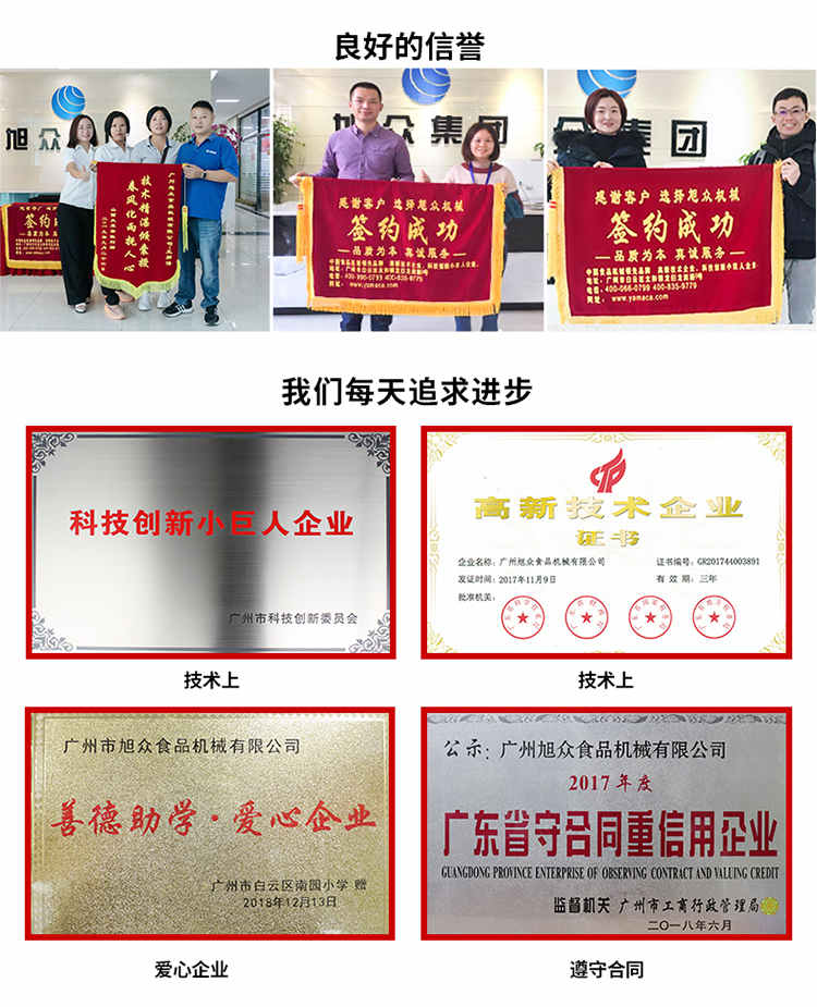 廣州旭眾食品機械有限公司是一家集科研開發(fā),生產(chǎn)設(shè)計,營銷服務(wù)為一體的現(xiàn)代化生產(chǎn)企業(yè)?,F(xiàn)代化生產(chǎn)車間,精湛制造技術(shù),所產(chǎn)機械歷經(jīng)市場重重考驗,不斷贏得海內(nèi)外客戶的贊譽。