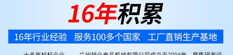 廣州旭眾食品機(jī)械有限公司是一家集科研開(kāi)發(fā),生產(chǎn)設(shè)計(jì),營(yíng)銷(xiāo)服務(wù)為一體的現(xiàn)代化生產(chǎn)企業(yè)?,F(xiàn)代化生產(chǎn)車(chē)間,精湛制造技術(shù),所產(chǎn)機(jī)械歷經(jīng)市場(chǎng)重重考驗(yàn),不斷贏得海內(nèi)外客戶(hù)的贊譽(yù)。