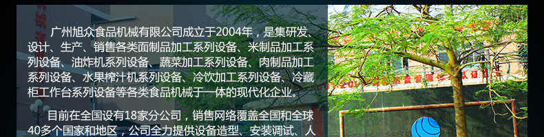 廣州旭眾食品機械有限公司是一家集科研開發(fā),生產設計,營銷服務為一體的現(xiàn)代化生產企業(yè)。現(xiàn)代化生產車間,精湛制造技術,所產機械歷經(jīng)市場重重考驗,不斷贏得海內外客戶的贊譽。