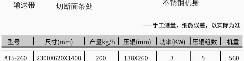 MT5-260型面條機,不同的面刀可以做出不同形狀的面食做工細,實用又方便,出面均勻,成型漂亮,可咨洵客服了解詳情