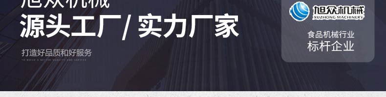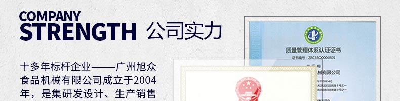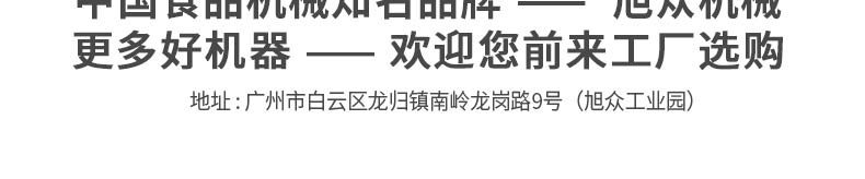 廣州旭眾食品機(jī)械有限公司是一家集科研開發(fā),生產(chǎn)設(shè)計(jì),營銷服務(wù)為一體的現(xiàn)代化生產(chǎn)企業(yè)?,F(xiàn)代化生產(chǎn)車間,精湛制造技術(shù),所產(chǎn)機(jī)械歷經(jīng)市場重重考驗(yàn),不斷贏得海內(nèi)外客戶的贊譽(yù)。