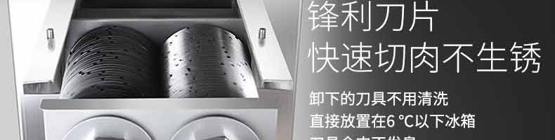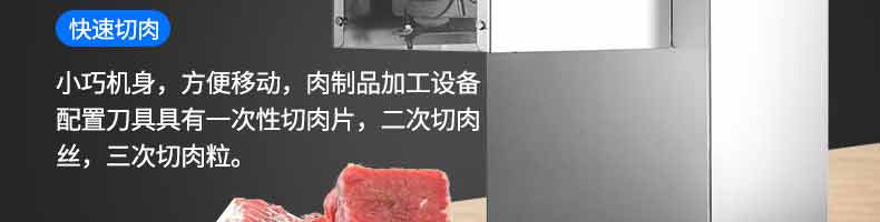 XZ-QX320-切肉機(jī),小型切肉機(jī)是一款主要對肉類進(jìn)行加工的設(shè)備,配置單層刀具一次性切肉片,二次切肉絲,再切成料。刀具采取外置懸臂式設(shè)計,拆洗方便,衛(wèi)生更有保障;配置多種刀具,可加工不同厚度的肉片,實現(xiàn)一機(jī)多用;機(jī)內(nèi)裝有安全保護(hù)開頭,刀具外露時,機(jī)器自鎖不能啟動,以保安全;卸下的刀具,不用清洗直接放置在6攝氏度以下的冰箱里,刀具余肉不發(fā)臭。刀片用特殊不銹鋼材料制造,經(jīng)久耐用。