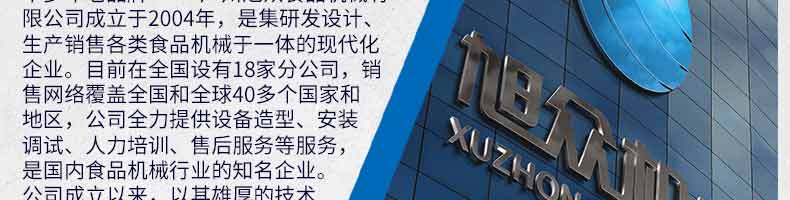 廣州旭眾食品機(jī)械有限公司是一家集科研開發(fā),生產(chǎn)設(shè)計,營銷服務(wù)為一體的現(xiàn)代化生產(chǎn)企業(yè)。現(xiàn)代化生產(chǎn)車間,精湛制造技術(shù),所產(chǎn)機(jī)械歷經(jīng)市場重重考驗,不斷贏得海內(nèi)外客戶的贊譽(yù)。