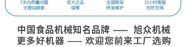 廣州旭眾食品機械有限公司是一家集科研開發(fā),生產(chǎn)設(shè)計,營銷服務(wù)為一體的現(xiàn)代化生產(chǎn)企業(yè)?,F(xiàn)代化生產(chǎn)車間,精湛制造技術(shù),所產(chǎn)機械歷經(jīng)市場重重考驗,不斷贏得海內(nèi)外客戶的贊譽。