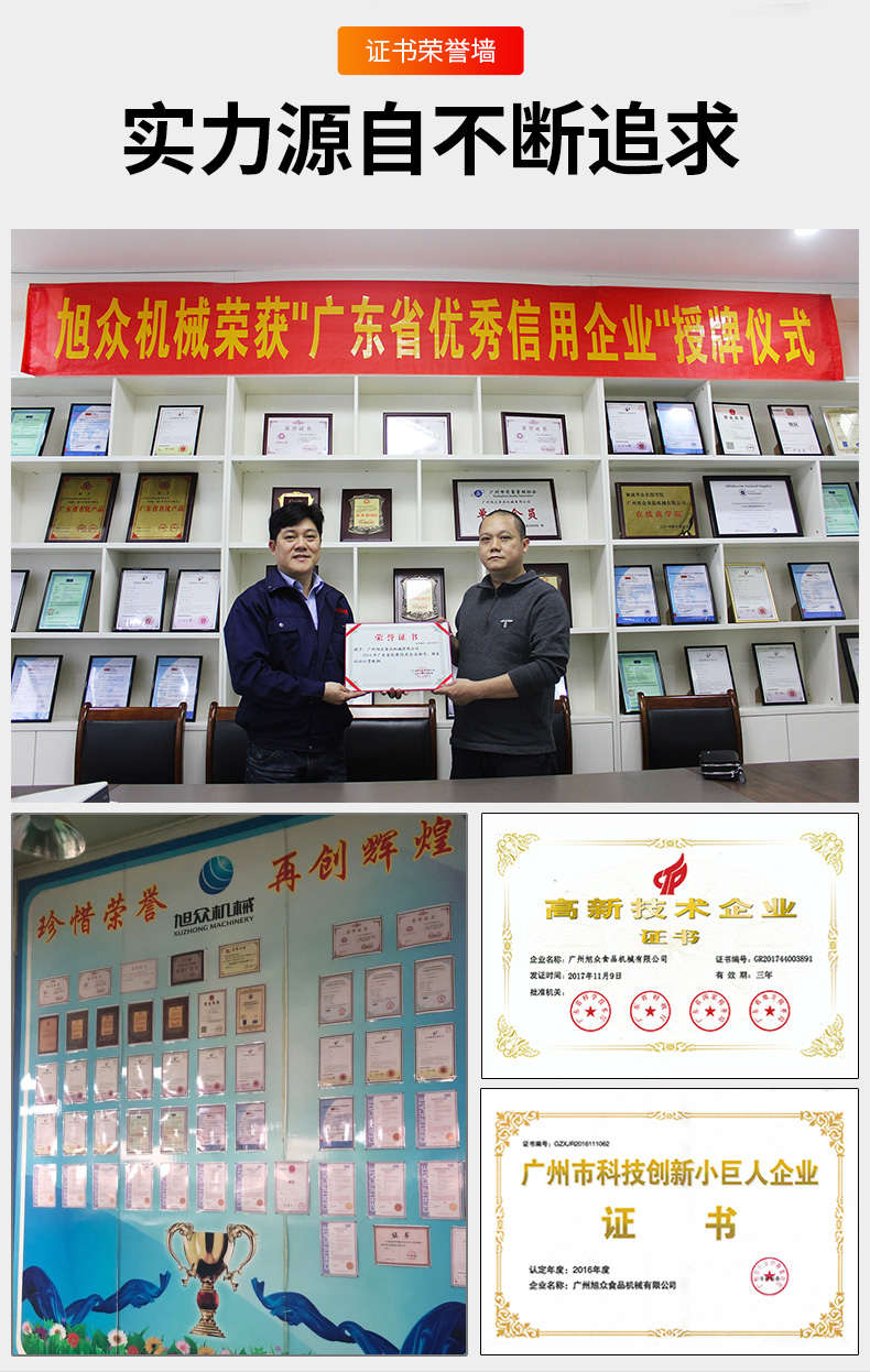 廣州旭眾食品機(jī)械有限公司是一家集科研開發(fā),生產(chǎn)設(shè)計,營銷服務(wù)為一體的現(xiàn)代化生產(chǎn)企業(yè)?,F(xiàn)代化生產(chǎn)車間,精湛制造技術(shù),所產(chǎn)機(jī)械歷經(jīng)市場重重考驗(yàn),不斷贏得海內(nèi)外客戶的贊譽(yù)。