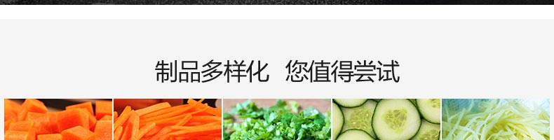 XZ-680A多功能切菜機(jī),一機(jī)多用,可切葉菜及根莖類蔬菜,并可切片、絲、條、丁、段,碎等,切菜規(guī)格可根據(jù)不同需要調(diào)節(jié)尺寸,方便快捷。隨機(jī)共配送三套刀具。