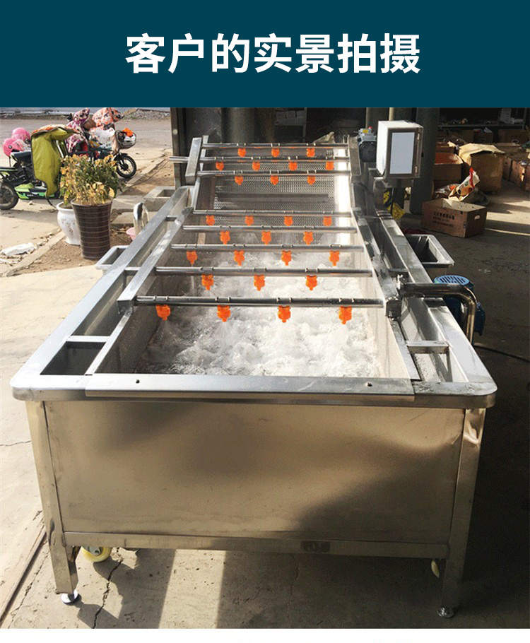 農(nóng)產(chǎn)品設備多功能蔬果凈菜流水清洗線洗菜機,適用范圍廣泛節(jié)省大量時間的同時,還為您節(jié)約了成本。堅固耐用整機采用質(zhì)不銹鋼,滋湃大動力源于好。搭載變頻電機,強勁動力穩(wěn)定輸出噪音低,好的動力源于好芯。