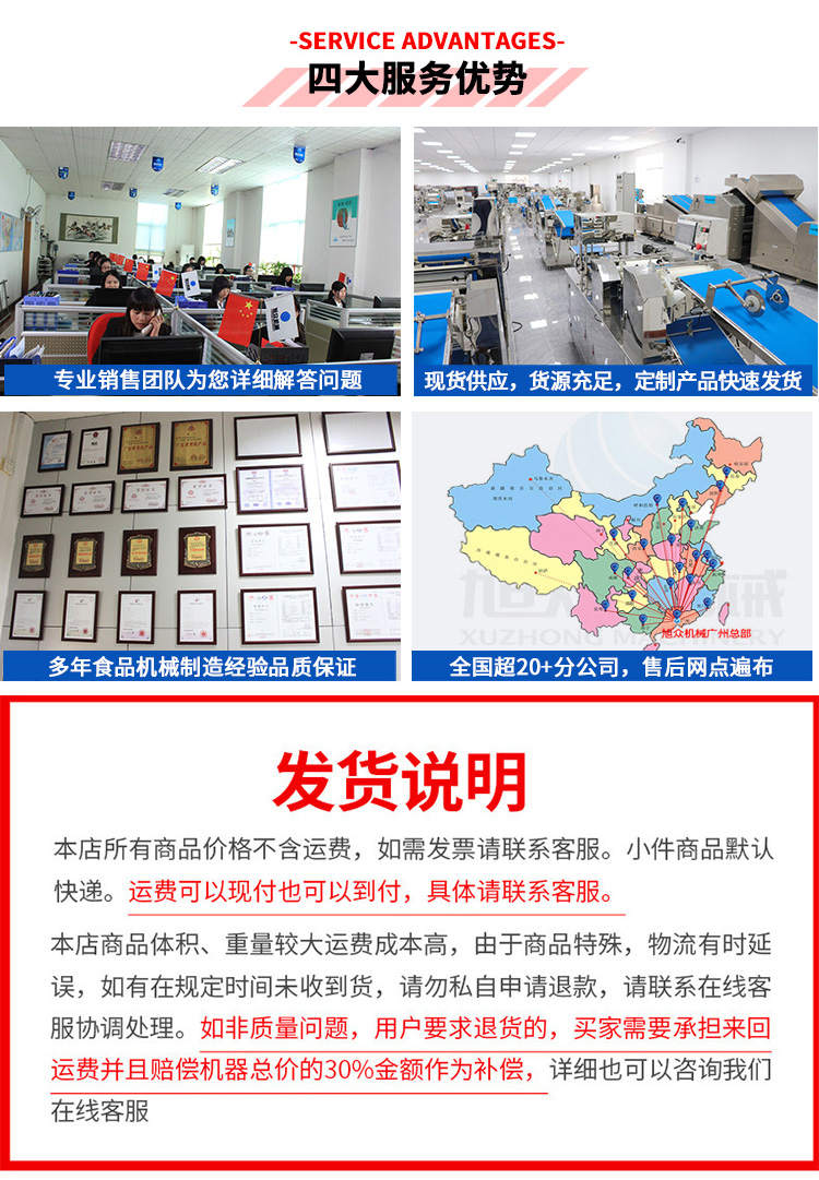 廣州旭眾食品機械有限公司是一家集科研開發(fā),生產(chǎn)設計,營銷服務為一體的現(xiàn)代化生產(chǎn)企業(yè)?,F(xiàn)代化生產(chǎn)車間,精湛制造技術,所產(chǎn)機械歷經(jīng)市場重重考驗,不斷贏得海內(nèi)外客戶的贊譽。