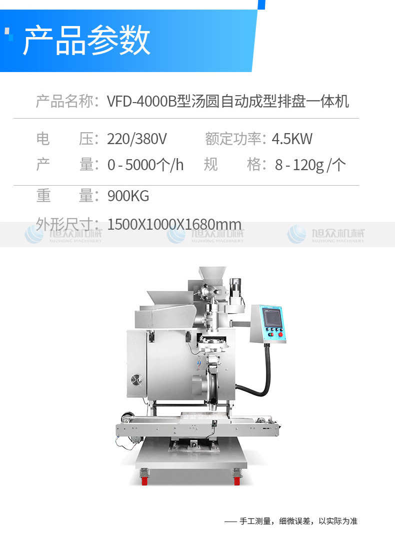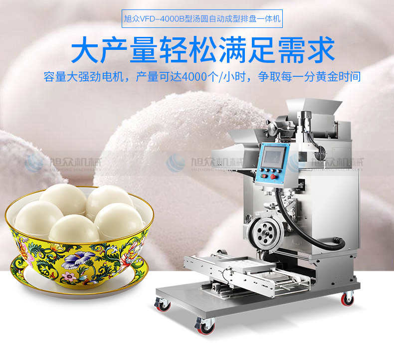 VFD-4000B湯丸機(jī),告別手工時(shí)代旭僉多功能湯圓機(jī)輕松解決問題。大產(chǎn)量輕松滿足需求容量大強(qiáng)勁電機(jī),產(chǎn)量可達(dá)4000個(gè)小時(shí),爭(zhēng)取每一分黃金時(shí)間