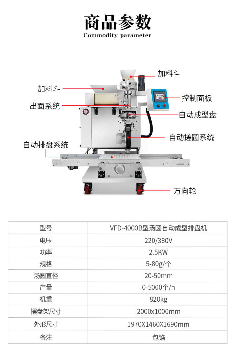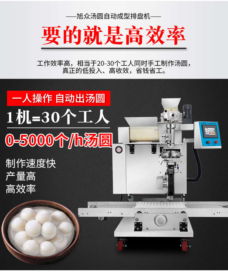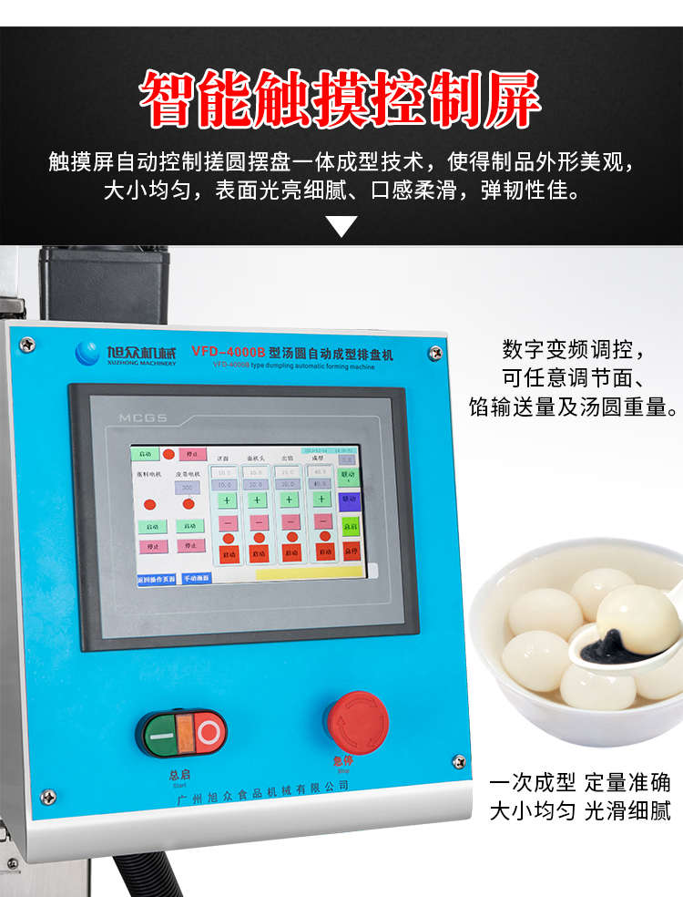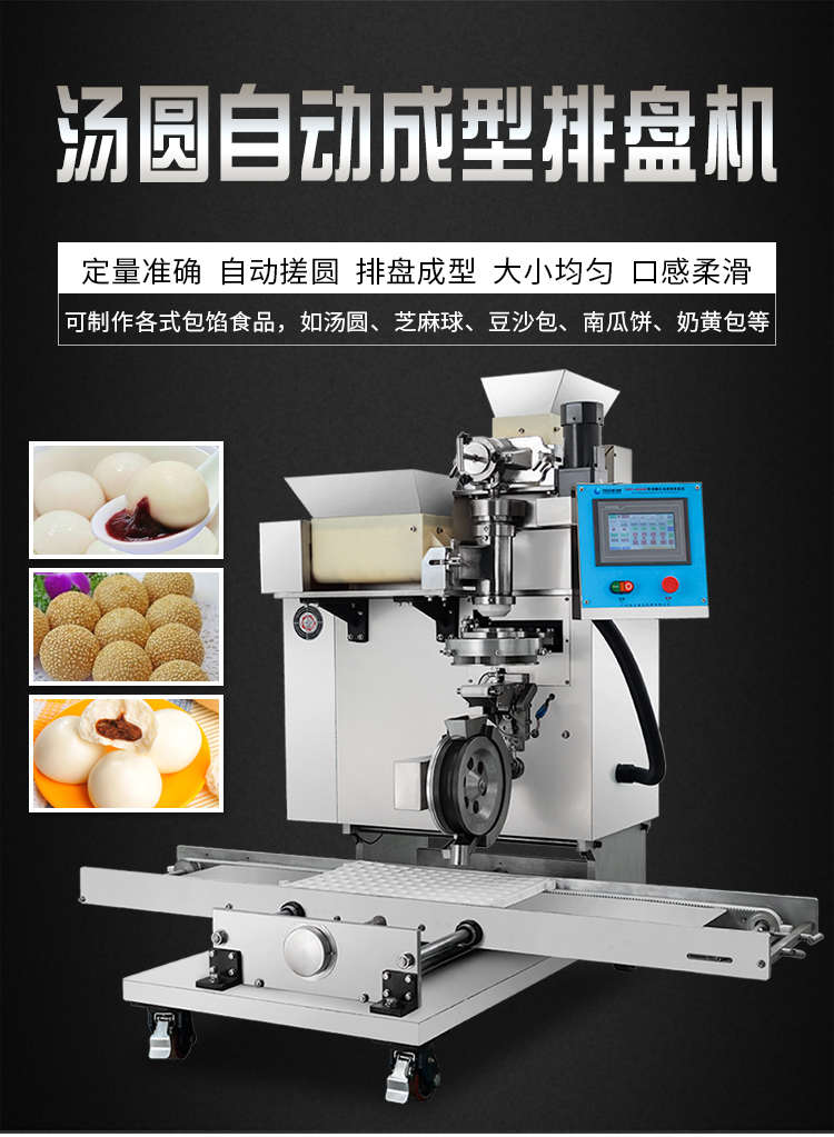 VFD-4000B湯圓機,定量準確自動搓圓排盤成型大小均勻口感柔滑??芍谱鞲魇桨W食品,如湯圓、芝麻球、豆沙包、南瓜餅、奶黃包等