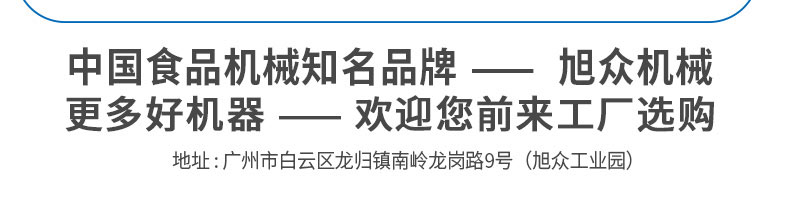廣州旭眾食品機械有限公司是一家集科研開發(fā),生產(chǎn)設(shè)計,營銷服務(wù)為一體的現(xiàn)代化生產(chǎn)企業(yè)。現(xiàn)代化生產(chǎn)車間,精湛制造技術(shù),所產(chǎn)機械歷經(jīng)市場重重考驗,不斷贏得海內(nèi)外客戶的贊譽。