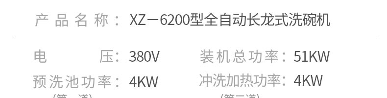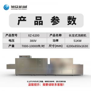 名稱XZ-6200長(zhǎng)龍式洗碗機(jī) 電源380v 功率51kw 產(chǎn)量 尺寸6200*850*1630mm可訂制 重量 規(guī)格 其他