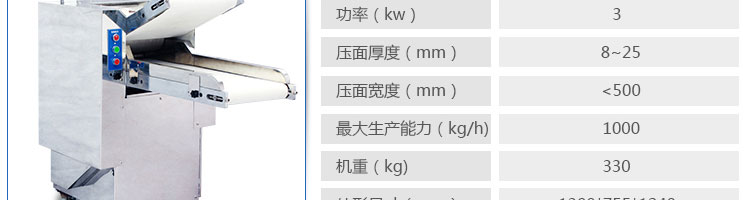 500自動壓面機系列,本機低噪音、高效率,適用于賓館、面包店、糕點廠制作面包、西點、包子,使可反復壓制和面后的面團、面筋,能得到增強。適應各客戶的不同需要。