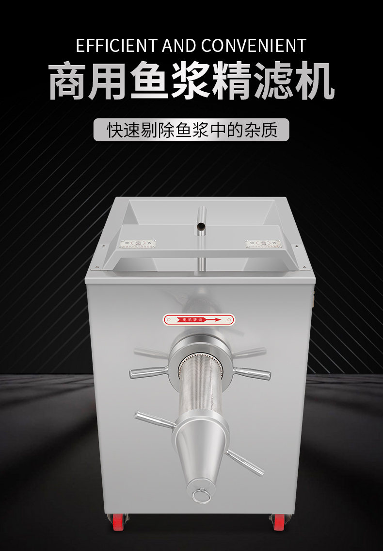 SZJ-300魚漿精濾機,商用創(chuàng)業(yè)魚漿精濾機,用于配套魚肉采肉機進行魚肉過濾雜質(zhì)。節(jié)省人工開支,人工加工魚漿,效率慢剔除魚細(xì)骨,不干凈,有了魚漿精濾機,一人就可以很快制作多種魚漿。