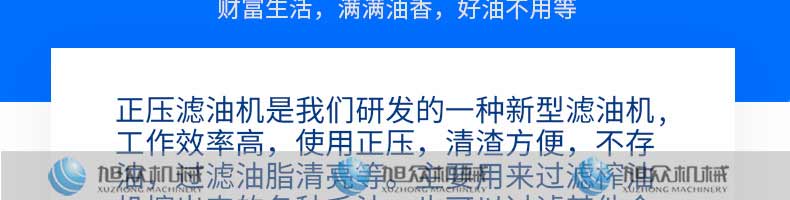 正壓濾油機,主要適用過濾:花生油,大豆油、菜籽油、葵花籽油、胡麻籽、芝麻油等