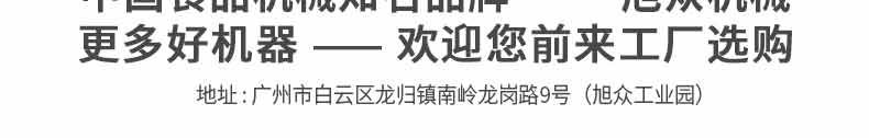 廣州旭眾食品機(jī)械有限公司是一家集科研開發(fā),生產(chǎn)設(shè)計(jì),營(yíng)銷服務(wù)為一體的現(xiàn)代化生產(chǎn)企業(yè)?,F(xiàn)代化生產(chǎn)車間,精湛制造技術(shù),所產(chǎn)機(jī)械歷經(jīng)市場(chǎng)重重考驗(yàn),不斷贏得海內(nèi)外客戶的贊譽(yù)。