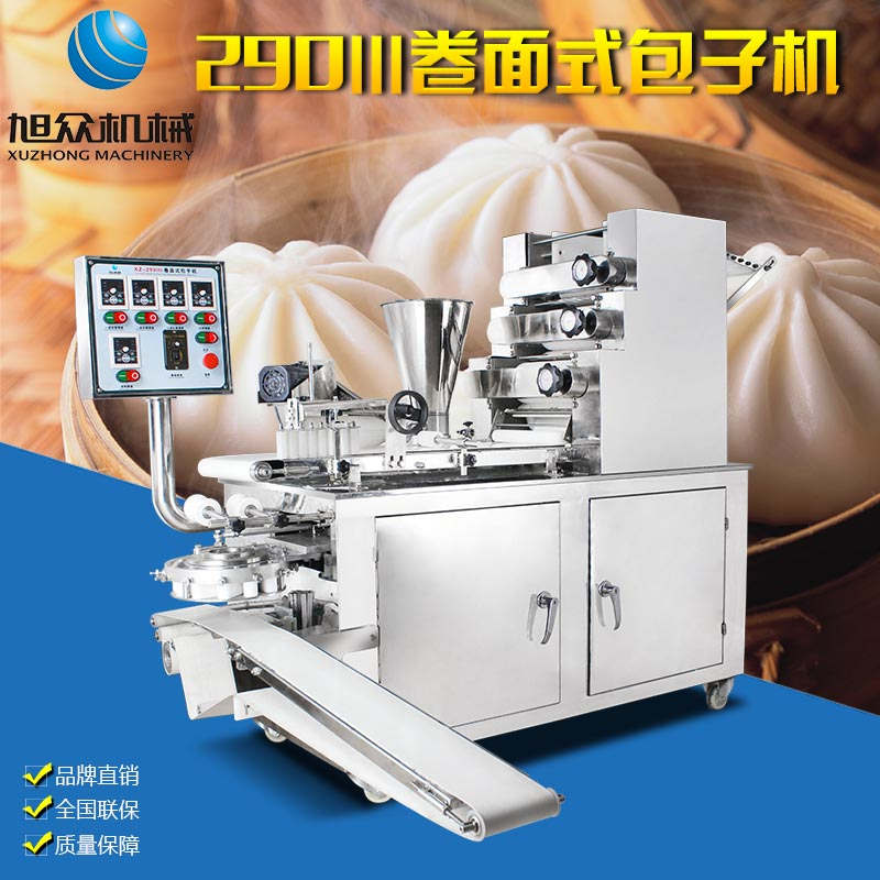 290III卷面式包子機,可生產各種不同餡料的包子、各式包餡食品,如豆沙包、南瓜餅、肉包、小籠包、水晶包等幾十種包餡制品。適用于個體戶、食品廠、學校等單位食堂。可滿足不同客戶群體。免費提供工藝技術。