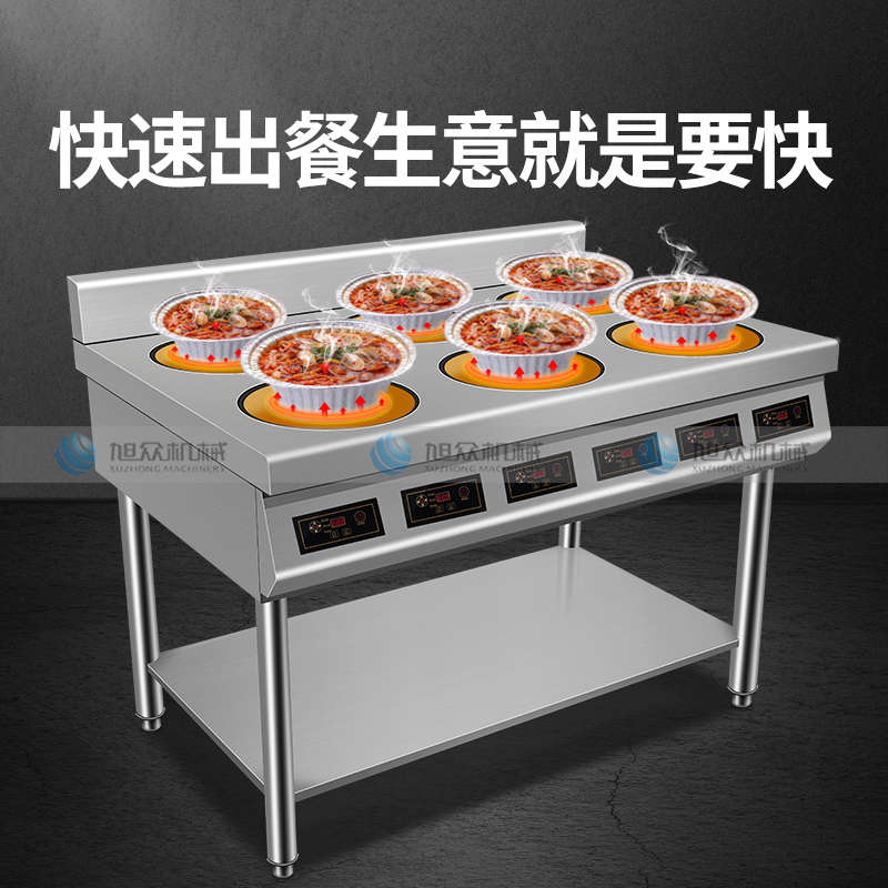 XZ-LBZL210圓頭六頭電陶爐,快餐外賣搶著買,一爐百烹快速出餐。煎炒燜煮煲等各樣花式,樣樣行,單頭3500W大火力實現快速出餐不等待做菜重要的就是火候,火力不足一切都是白搭。