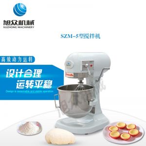 SZM-5型攪拌機,可用于攪拌奶油、蛋糕液、餡料及和制面團等操作。打蛋攪拌機等作攪拌食料、揉和面團之用,是生產優質糕點的理想設備,適用于酒店、飯店、學校部門、面包屋以及食品廠家。