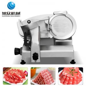 臺(tái)式半自動(dòng)切片機(jī),適合切無(wú)骨肉類和其他類似榨菜帶有彈性的食物,把原材料肉切成肉片,并可自動(dòng)成卷狀。可切牛肉片、羊肉片等