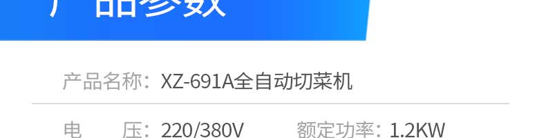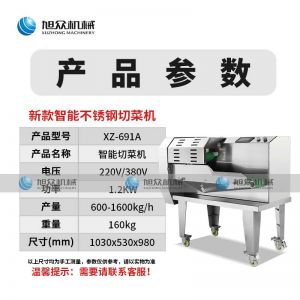 名稱XZ-691A切菜機 電源220/380v 功率1.2kw 產量600-1600kg/h 尺寸1030*530*980mm 重量160kg 規格 其他