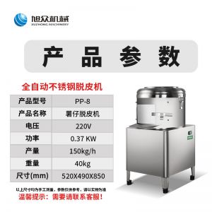 名稱PP8、PP15薯仔脫皮機 電源220v 功率0.37kw/0.75kw 產量8千克/次 / 15千克/次 尺寸480*480*780mm/500*500*860mm 重量52kg/66kg 規格 其他