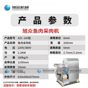 XZC-160型魚肉采肉機,去刺干凈、高效出肉。加工魚肉去刺、蟹蝦去殼等。手工去魚刺太累了,傳統的魚糜加工中,手工去魚皮魚刺,既費時又費力不小心就會傷到手。